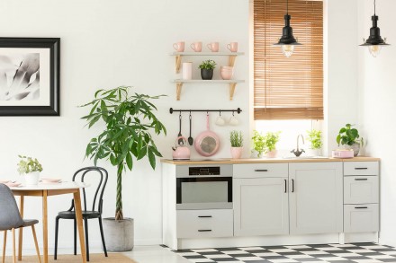 Salon w bloku z wielkiej płyty to często spore wyzwanie aranżacyjne. Największą zmorą budownictwa tego typu są zwykle ograniczone przestrzenie do zagospodarowania, co w połączeniu z niewielkimi oknami bądź ich niską liczebnością powoduje spore zaciemnienie mieszkania. Jak urządzić salon w bloku, aby uniknąć tego problemu i zyskać jasne, przestronne pomieszczenie? Dobrym pomysłem w tej sytuacji jest rezygnacja ze ściany oddzielającej kuchnię i pokój dzienny oraz stworzenie nowoczesnego salonu z aneksem kuchennym. Dzięki temu rozwiązaniu zyskamy dodatkową przestrzeń oraz nadamy naszemu pomieszczeniu wrażenia lekkości. Wzmocni je dodatkowo biała bądź jasna kolorystyka ścian oraz zastosowanie lustrzanych powierzchni, optycznie powiększających przestrzeń praz odbijających światło. Aby zabudowa kuchenna nie przyciągała zbyt dużej uwagi, powinniśmy wybrać jej minimalistyczną formę oraz unikać szafek sięgających do samego sufitu. Ustawiony w centralnej części stół z krzesłami oraz dobrane do niego kolorystycznie dodatki przełamią dominujące jasne barwy i w ciekawy sposób uzupełnią salon.